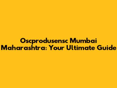 Oscprodusensc In Mumbai: Your Ultimate Guide
