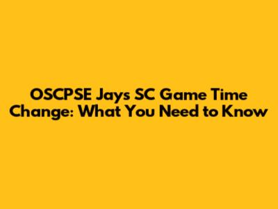 OSCPSE Jays SC Game Time Change: What You Need To Know
