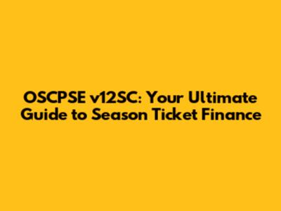 OSCPSE V12SC: Your Guide To Season Ticket Finance