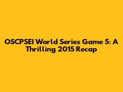 OSCPSEI World Series Game 5: A Thrilling 2015 Recap