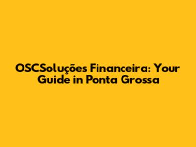 OSCSoluções Financeira: Your Guide In Ponta Grossa