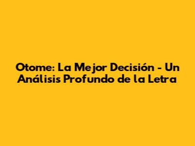 Otome: La Mejor Decisión - Letra Y Significado Revelados