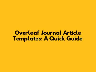 Overleaf Journal Article Templates: A Quick Guide