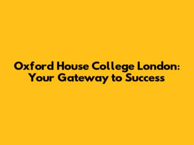 Oxford House College London: Your Gateway To Success