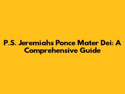 Hey guys! Ever found yourself scratching your head trying to figure out what exactly P.S. Jeremiah's Ponce Mater Dei refers to? You're not alone! This phrase might sound a bit mysterious, maybe even like a secret code or a forgotten language. But don't worry, we're going to break it down and make it super clear for you. Think of this as your go-to guide to understanding this interesting term. We'll dive deep into its origins, its potential meanings, and why it might pop up in different contexts. Whether you're a student researching obscure topics, a trivia buff, or just plain curious, stick around because we're about to shed some light on this intriguing phrase. Get ready to impress your friends with your newfound knowledge!