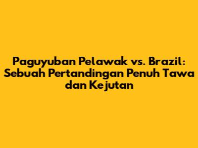 Paguyuban Pelawak vs. Brazil – Mendengar kombinasi ini mungkin membuat kalian semua bertanya-tanya, apa yang sebenarnya terjadi? Bayangkan sebuah pertandingan sepak bola yang tidak hanya menampilkan keahlian di lapangan hijau, tetapi juga dipenuhi dengan gelak tawa, lelucon, dan aksi komedi yang tak terduga. Ini bukan sekadar pertandingan biasa, ini adalah perpaduan unik antara dunia olahraga dan seni pertunjukan yang menghibur. Artikel ini akan membawa kalian semua untuk menyelami lebih dalam tentang konsep menarik ini, menjelajahi kemungkinan skenario, dan menggali lebih jauh tentang potensi dampak budaya serta hiburan yang bisa dihasilkan.