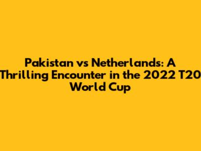Pakistan Vs Netherlands: Thrilling 2022 T20 World Cup Clash