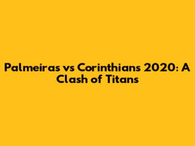 Palmeiras Vs Corinthians 2020: A Clash Of Titans