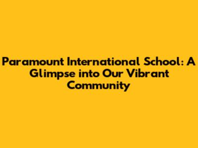 Paramount International School: A Glimpse into Our Vibrant Community