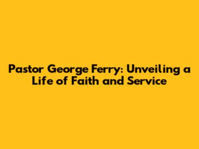 Pastor George Ferry: A Deep Dive Into His Life And Ministry