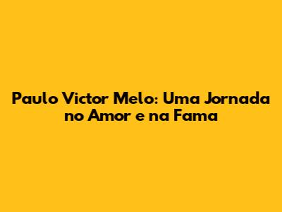 • Onde posso acompanhar as novidades sobre Paulo Victor Melo? Você pode acompanhar as novidades sobre Paulo Victor Melo em suas redes sociais e em sites de notícias sobre celebridades.