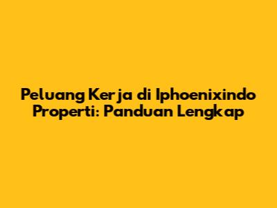 Peluang Kerja Di Iphoenixindo Properti: Panduan Lengkap
