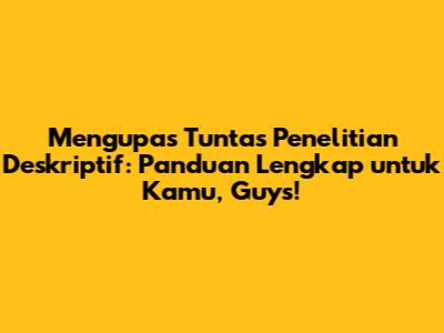Apa kabar, para peneliti muda dan penjelajah ilmu pengetahuan? Pernah dengar tentang penelitian deskriptif? Nah, kalau kamu lagi pusing tujuh keliling mikirin skripsi, tesis, atau sekadar pengen tahu lebih dalam tentang suatu fenomena, kamu datang ke tempat yang tepat, nih! Artikel ini bakal ngasih kamu gambaran super jelas tentang apa sih penelitian deskriptif itu, kayak gimana ciri-cirinya, dan contoh-contohnya yang bakal bikin kamu "oh gitu ya!". Siap-siap menyimak, ya!