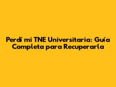 Perdí Mi TNE Universitaria: Guía Completa Para Recuperarla