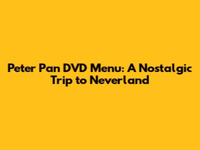 Peter Pan DVD Menu: A Nostalgic Trip To Neverland