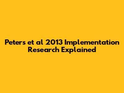 Peters Et Al 2013 Implementation Research Explained