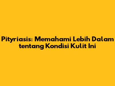 Hai, guys! Pernahkah kamu mendengar tentang pityriasis? Mungkin istilah ini terdengar asing, tapi sebenarnya ini adalah kondisi kulit yang cukup umum terjadi. Dalam artikel ini, kita akan membahas secara mendalam tentang apa itu pityriasis, mulai dari penyebabnya, gejala-gejalanya, cara mengobatinya, hingga bagaimana cara mencegahnya. Jadi, siap-siap untuk belajar lebih banyak tentang kesehatan kulitmu, ya!