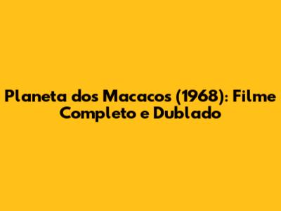 Planeta Dos Macacos (1968): Filme Completo E Dublado