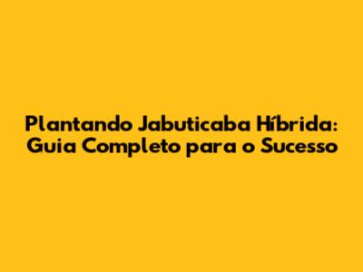 Plantando Jabuticaba Híbrida: Guia Completo Para O Sucesso