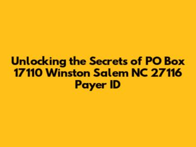 Why is the PO Box 17110 Winston Salem NC 27116 Payer ID So Important?