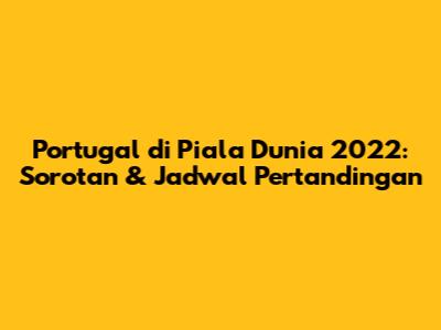 Piala Dunia 2022, sebuah turnamen sepak bola paling bergengsi di dunia, menjadi panggung bagi Portugal untuk unjuk gigi. Sebagai salah satu tim kuat Eropa, Portugal datang dengan harapan besar, didorong oleh talenta-talenta luar biasa dan ambisi untuk meraih kejayaan. Artikel ini akan membahas perjalanan Portugal di Piala Dunia 2022, mulai dari sorotan pertandingan, jadwal, hingga ulasan mendalam tentang performa mereka.
