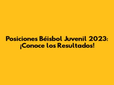 Posiciones Béisbol Juvenil 2023: ¡Conoce Los Resultados!