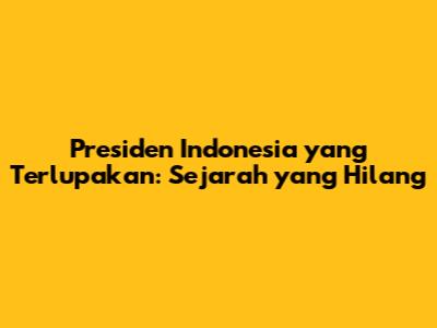 Presiden Indonesia Yang Terlupakan: Sejarah Yang Hilang