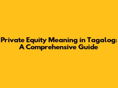 Private Equity Meaning In Tagalog: A Comprehensive Guide