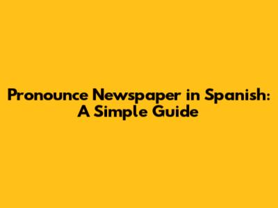 Pronounce Newspaper In Spanish: A Simple Guide