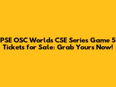 PSE OSC Worlds CSE Series Game 5 Tickets: Buy Now!