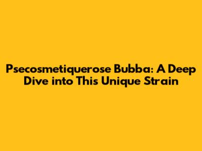 Psecosmetiquerose Bubba: A Deep Dive Into This Unique Strain
