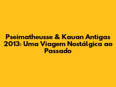 Revivendo os Hits: Como Curtir Pseimatheusse e Kauan 2013 Hoje