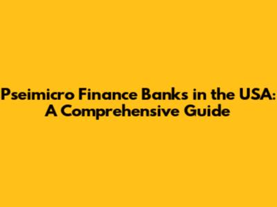 Pseimicro Finance Banks In The USA: A Comprehensive Guide