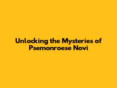 Unlocking the Mysteries of Psemonroese Novi