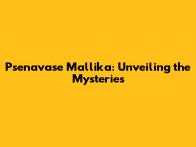 Psenavase Mallika: Your Ultimate Guide