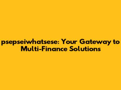 Psepseiwhatsese: Your Gateway To Multi-Finance Solutions