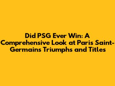 Hey guys! Ever wondered about Paris Saint-Germain (PSG) and their trophy cabinet? Well, you're in the right place! We're diving deep into the history of this powerhouse club, answering the big question: did PSG ever win? Spoiler alert: they sure have! PSG has become a dominant force in French football and a contender on the European stage. So, buckle up, because we're about to explore their victories, legendary players, and the journey that brought them to where they are today. We'll be looking at their titles in detail, from domestic leagues and cups to their performances in European competitions. PSG's story is one of ambition, investment, and ultimately, success. Let's get started and see what they've won! This article will not only give you a quick answer, but also provide a deep dive into the history, key moments, and the stars that made it all possible. Are you ready to explore the world of PSG? Let's go!
