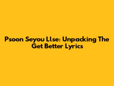 Psoon Seyou Llse: Unpacking The Get Better Lyrics