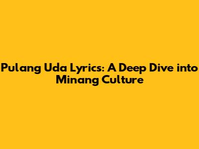 Pulang Uda Lyrics: A Deep Dive Into Minang Culture