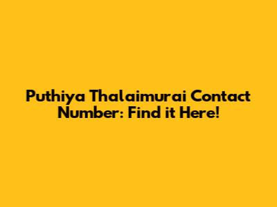 Puthiya Thalaimurai Contact Number: Find It Here!