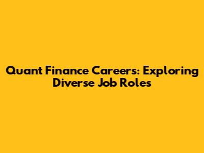 Quant Finance Careers: Exploring Diverse Job Roles