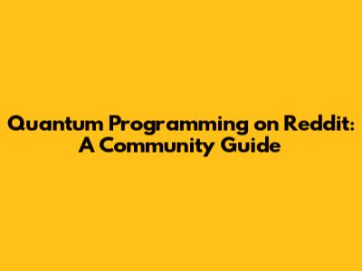 Quantum Programming On Reddit: A Community Guide
