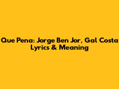 Hey guys! Let's dive into a classic – Que Pena by the legendary Jorge Ben Jor and the amazing Gal Costa. This song is more than just a tune; it's a whole vibe. We're going to break down the lyrics, explore the meaning, and understand why this song has stood the test of time. Get ready to groove!