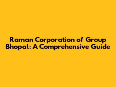 Raman Corporation: Your Guide To Bhopal's Leading Group