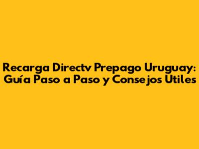 Recarga Directv Prepago Uruguay: Guía Completa Y Fácil