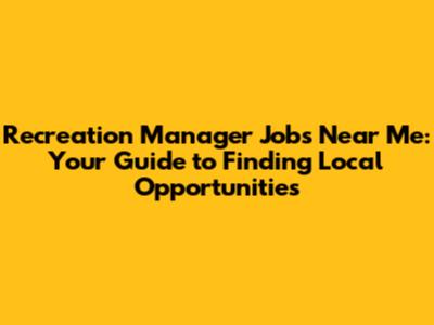 Recreation Manager Jobs: Find Local Opportunities Now!