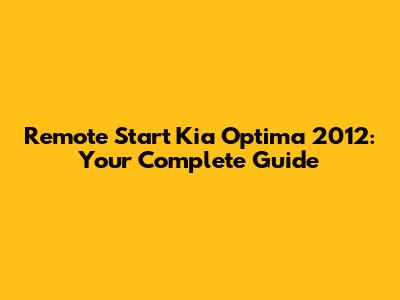 Remote Start Kia Optima 2012: Ultimate Guide