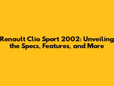 Renault Clio Sport 2002: Specs, Features & More