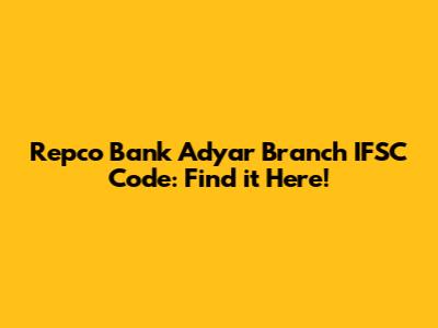 Repco Bank Adyar Branch IFSC Code: Find It Here!