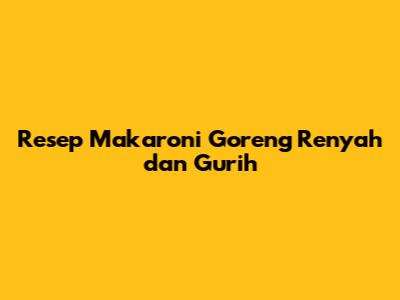 Resep Makaroni Goreng Renyah Dan Gurih
